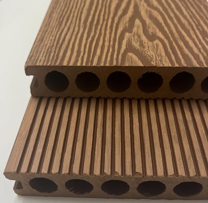 พื้นไม้เทียมwpc-รูกลม_สีไม้ชิงชัน(ราคานรวมปู)