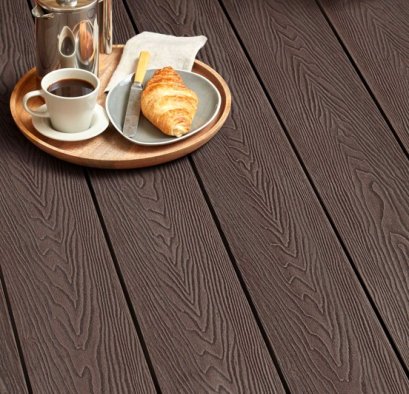 สร้างพื้นสวยรอบบ้าน พื้นไม้เทียมwpc 6"(140mm) สีน้ำตาล รุ่นรูกลม ไม่โก่งไม่บิดตัว กันปลวก พื้นไม้เทียมคุณภาพ จำหน่าย&ติดตั้งให้กับริษัทมหาชนทั่วประเทศ