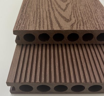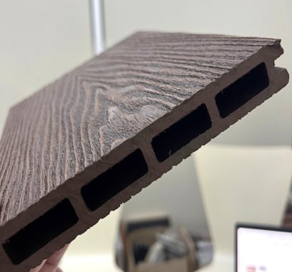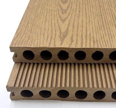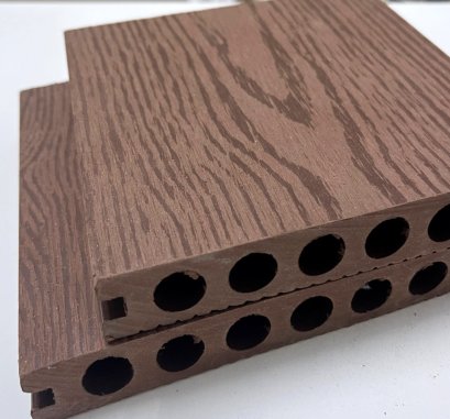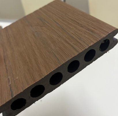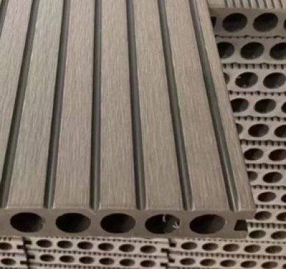 ไม้เทียมwpcWalnutรุ่นรูกลม(ราคาต่อตารางเมตรรวมปู)