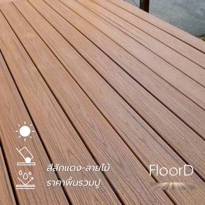 สร้างพื้นสวยรอบบ้าน พื้นไม้เทียมwpc 6"(140mm) สีสักแดง รุ่นรูกลม ไม่โก่งไม่บิดตัว กันปลวก พื้นไม้เทียมคุณภาพ จำหน่าย&ติดตั้งให้กับริษัทมหาชนทั่วประเทศ