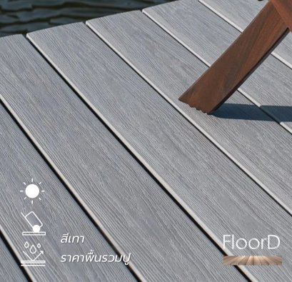 สร้างพื้นสวยรอบบ้าน พื้นไม้เทียมwpc 6"(140mm) สีเทา รุ่นรูกลม ไม่โก่งไม่บิดตัว กันปลวก พื้นไม้คุณภาพ จำหน่าย&ติดตั้งให้บริษัทมหาชนทั่วประเทศ คลิก