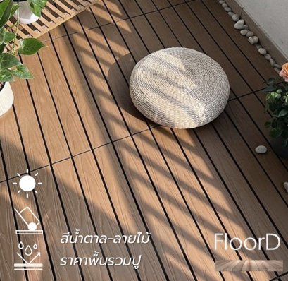 สร้างพื้นสวยรอบบ้าน พื้นไม้เทียมwpc(รุ่นรูเหลี่ยม) สีน้ำตาล ทนแรงกระแทก-สีไม่ซีดจาง ราคาพื้นไม้เทียม+ติดตั้ง+อุปกรณ์ ติดตั้งให้บริษัทมหาชนทั่วประเทศ