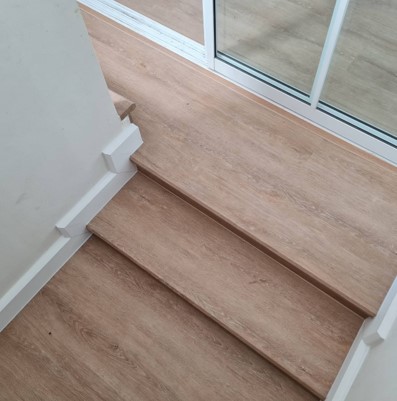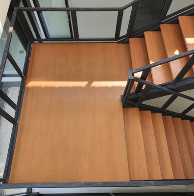 ชุดไม้บันไดชานพักกระเบื้องยางspcลายไม้ 20mmX120X120CM