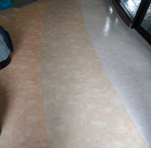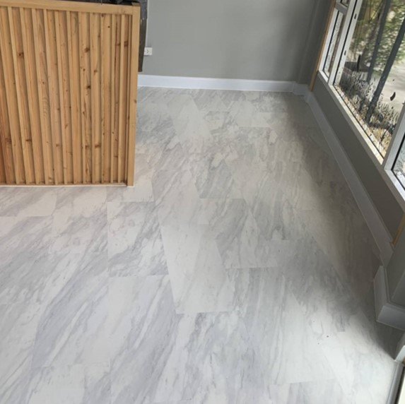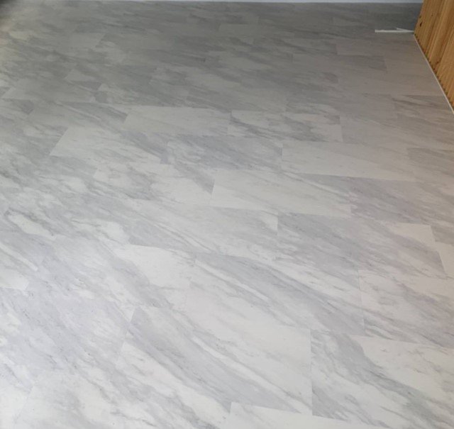 • กระเบื้องยางลายหินอ่อนแบบปูกาวLVT ติดทับบนกระเบื้องเดิมและพื้นซิเมนต์ขัดมัน โดยติดกับพื้นชั้นล่างด้วยกาวขาวกระเบื้องยาง