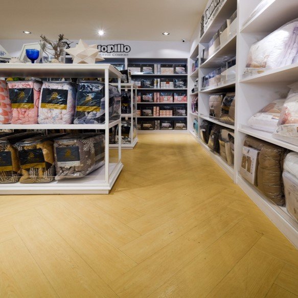 - พื้นที่นิยมใช้ปูกระเบื้องยางลายก้างปลา ส่วนใหญ่เป็นกระเบื้องยางรุ่นปูกาว หาซื้อได้ง่ายและมีราคาถูก ข้างแผ่นและหัวแผ่นเรียบตรงไม่มีร่องคลิกปูวางชนได้สนิท