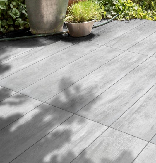 พื้นกระเบื้องลายไม้ (Ceramic tiles) พื้นยอดนิยม มีความแข็งแรงสูงผิวหน้ามีความมัน โครงสร้างตัวแผ่นทำจากกระเบื้องเซรามิค มีความหนา 4-14 mm นิยมใช้กับงานพื้นภายนอกอาคารที่ต้องโดนน้ำและแสงแดด ผิวหน้ากระเบื้องมีการออกแบบผิวหน้าเป็นลายไม้ให้สวยงาม มีผิวสัมผัสกันลื่น ข้อดีของกระเบื้องลายไม้คือ ตัวแผ่นมีความทนทานสูง กันน้ำและเชื้อรา ทำความสะอาดได้ง่าย เหมาะสำหรับพื้นห้องครัว, พื้นห้องน้ำ ที่โดนน้ำและสิ่งสกปรกตลอดเวลา นอกจากนั้นยังเหมาะกับพื้นภายนอกอาคาร เช่น พื้นทางเดิน, พื้นรอบสระว่ายน้ำ หรือพื้นระเบียงภายนอกอาคาร ข้อจำกัดของพื้นกระเบื้องลายไม้ คือ มีราคาสูง การติดตั้งใช้เวลานานใช้การติดตั้งด้วยปูนกาวปูกระเบื้อง กรณีตัวแผ่นมีความเสียหายมีความยุ่งยากเพราะติดด้วยปูนกาว