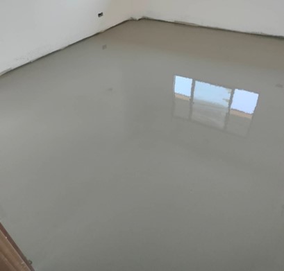 - เทปูน Self-Leveling ที่ผสมแล้ว ให้ทั่วพื้นห้อง ทำการเกลี่ยปรับให้เสมอกัน