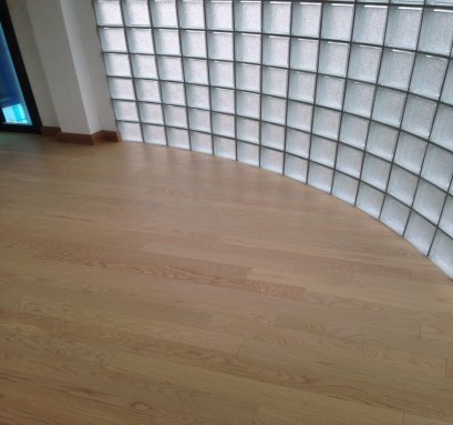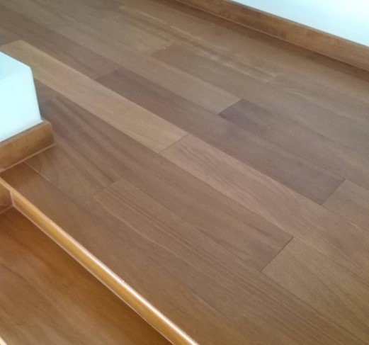 - นำลิ่มไม้ข้างผนังที่วางไว้ออก ทำการติดบัวPVCข้างผนังรอบพื้นไม้เอ็นจิเนียร์ โดยปิดทับช่องว่างระหว่างพื้นไม้เอ็นจิเนียร์และผนัง เก็บความเรียบร้อยด้วยแดปหรือซิลิโคนสีเดียวกับพื้นไม้เอ็นจิเนียร์ด้านล่างและด้านบนบัวPVC