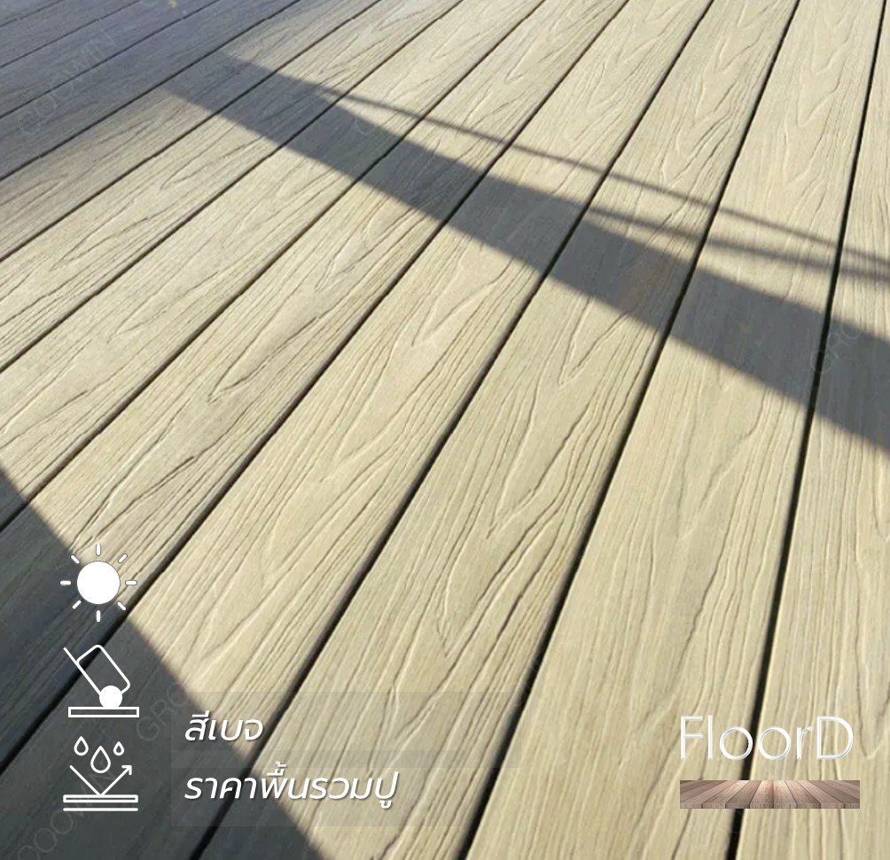 รายละเอียดราคาพื้นไม้เทียมwpc 23 มิล สีเบจ (ฺBeige) ราคา Promotion 1,950 บาท ต่อตารางเมตรรวมติดตั้ง ราคาดังกล่าวรวม- วัสดุพื้นไม้เทียมwpcลายไม้ ความหนา23มิลลิเมตร * ความกว้าง140 มิลลิเมตร * ความยาว 3.00เมตร